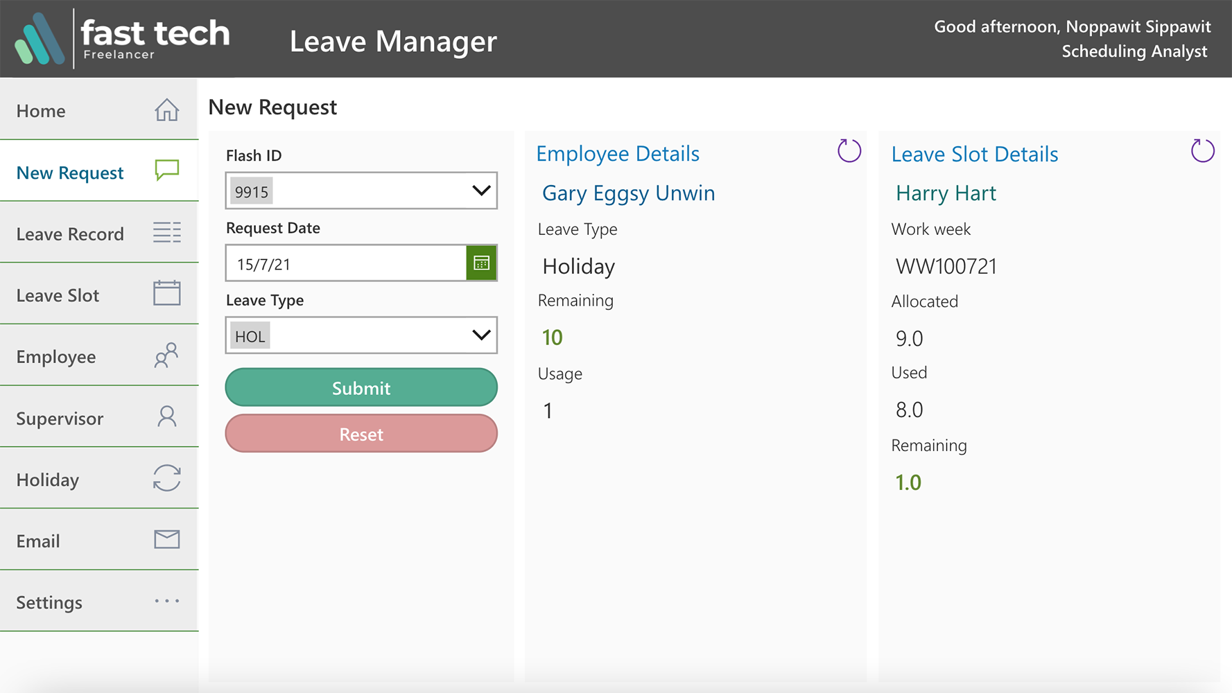 The application is created for managing leaves of 300+ shift staffs in an outsourced service provider company.